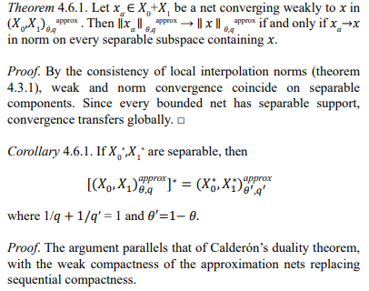Proof. The argument parallels that of Calderón’s duality theorem, with the weak compactness of the approximation nets replacing sequential compactness.