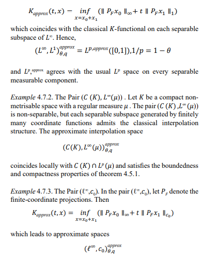 These examples confirm that the approximate interpolation scheme reproduces the expected local structure of classical interpolation spaces while extending them coherently to non-separable settings. In particular, the equivalence between approximate and classical spaces on separable components ensures the applicability of the framework to a wide range of problems in operator theory and mathematical physics.