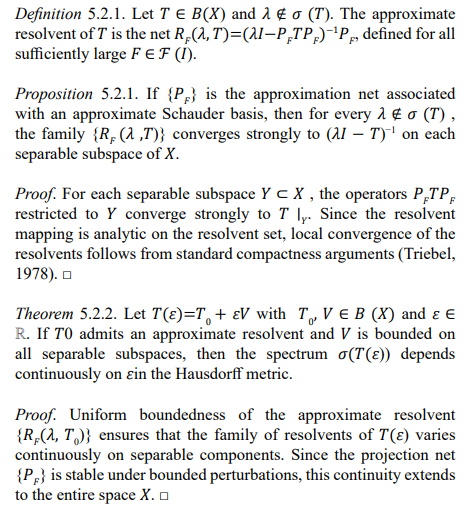 3. Operator and Spectral Stability: ensuring continuity of spectra and boundedness of operators under approximate compactness.