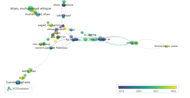 The yearly AICV research citation and publication combined and displayed in Figure 2. From Figure 2, the first record on AICV, “IMAGE-ANALYSIS AND COMPUTER VISION IN MEDICINE” is an article that was published in 1994. The second publication was in 1995 withtwo records “OPTICAL-FLOW FROM 1-D CORRELATION - APPLICATION TO A SIMPLE TIME- TO-CRASH DETECTOR” and “VISUAL SURVEILLANCE IN A DYNAMIC AND UNCERTAIN WORLD”. The publication visualization however shows an upward trend, with no more than 50 yearly publications before 2017, AICV has spiked the interest of researchers and has seen a rapid growth becoming a popular research niche since 2018. The interest rate however skyrocketed in 2022. With rapid publication growth since 1995 to 2022, it shows that researchers are interested in the field and judging from the rapid upward trend, the publications number in 2023 will not be lesser than 2022. Similarly, in terms of citations, the first citation occurred in 1995 and it grew really slowly before 2013. However, since 2014, the citation numbers have also seen a rapid increase from less than 500 in 2014 to over 16000 in 2022. Making it evident that in recent years, AICV has received wide attention from scholars. It is the first quarter of the year 2023 and so far, it’s been almost ¼ of 2022 total performance.