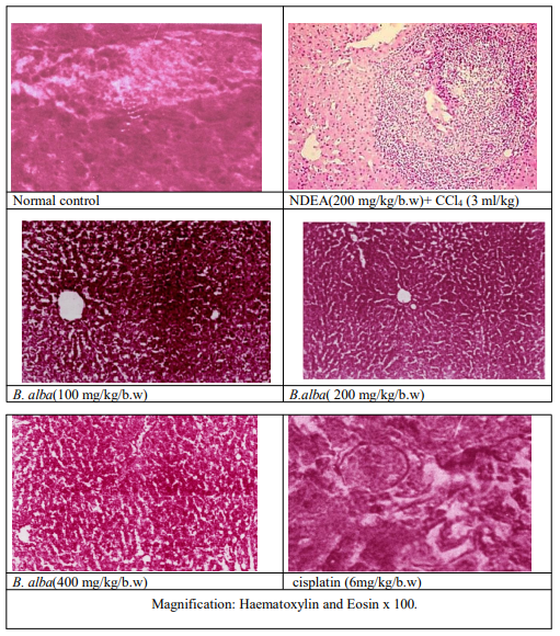 Figure 3: Histopathological analysis of B.alba against NDEA+CCl4 induced HCC