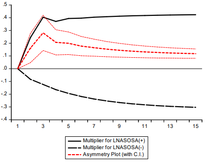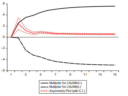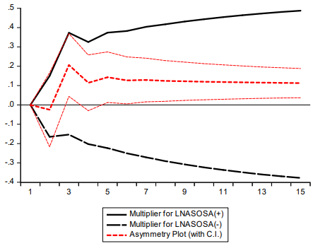 From the asymmetric Dynamic Multiplier Graphs above the following conclusion was made.