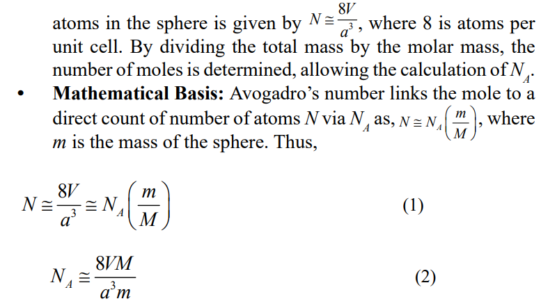 • X-ray Crystallography: Measuring densities and unit cells of crystals (notably silicon-28 spheres) allowed precise atom counts per unit mass [4,5,6].