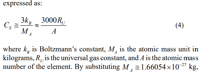 In this section, we present a unified semi-empirical framework to approximate the specific heat capacity CS of solids [36,37], independent of temperature, grounded in fundamental physical constants and atomic-scale properties. The key relation is