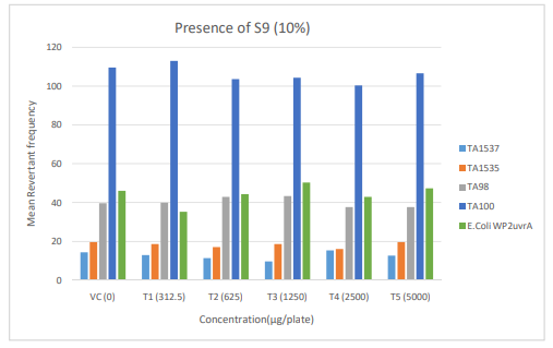 Figure 3: Diagrammatic representation of Mutagenicity Assay - Mean Revertant Frequency Metabolic Activation: Presence of S9 (10%)