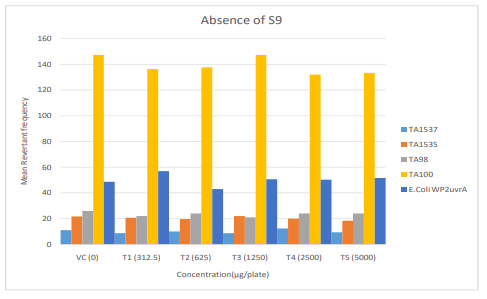 Figure 4: Diagrammatic representation of Mutagenicity Assay Mean Revertant Frequency Metabolic Activation: Absence of S9