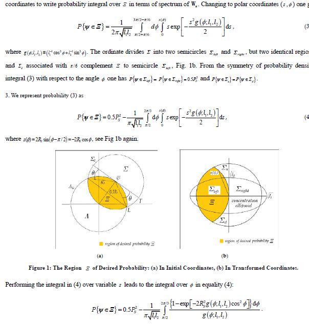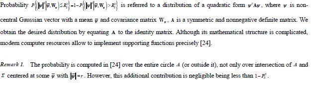 The topic of a confidence circle has been addressed in a number of publications regarding circular error probability (CEP) integral, occurring in navigation and surveillance systems [25-29]. CEP is the radius of a confidence circle which contains a random variable with probability 0.5.