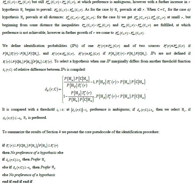 Citation: Gerasimov, O. I. (2025). Bayesian Identifying One or Two Close Sources by Gaussian Estimates of Planar Location under Double Emission. J Sen Net Data Comm, 5(1), 01-21.