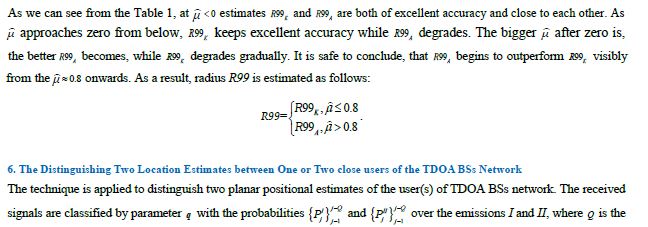 The technique’s work is illustrated in the example of distinguishing two positional estimates between one and two close each other users of the time difference of arrival (TDOA) basic stations (BS)s network. The signals there are classified to derive the initial probabilities of one and two users. The solution must answer the following question: does one user emit twice or do two users at some distance between them emit once. The technique implementation is based on the radius of the high confidence circle obtained in the paper for the confidence probability 0.99. This radius will subsequently be denoted as R99.