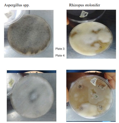 Fungi had been known to affect groundnut production for a long time. Two fungal species were identified in this research: Aspergillus niger and Rhizopus stolonifer. These fungi were among the microorganisms isolated from previous findings; Fagbohun and Faleye isolated Aspergillus niger, Aspergillus flavus, Rhizopus spp [6]. Mucor spp. and Aspergillus fumigatus in sundried groundnut, Adebesin et al., isolated Aspergillus flavus, Aspergillus niger, Aspergillus tamarii, Penicillium Citrinum, Rhizopus stolonifer and Macrophomina phaseolina in roasted groundnut sold in Bauchi State, Ibrahim (2014) observed Mucor spp., Aspergillus spp., Penicillium spp., Curvularia spp., Fusarium spp. and Rhizopus spp. in groundnut seeds sold in Aliero central market, Ekiti state [7]. Also, Aspergillus spp., Penicillium spp., Fusarium spp., Mucor spp. and Rhizopus spp. were isolated from unpeeled groundnut sold in Yenagoa metropolis [8]. Akinnibosun and Osawaru isolated Neurospora spp., Aspergillus niger, Aspergillus flavus, Mucor spp. Rhizopus spp., Penicillium spp., Trichoderma spp. and Fusarium spp. in peeled and unpeeled groundnut seeds sold in Benin City [9]. The fungi isolated in this research are toxin producing organisms and they cause series of health challenges ranging from vomiting to cancer of major organs and sometimes death [10]. The fungi associated with groundnut in this study were Aspergillus niger and Rhizopus stolonifer. Aspergillus niger showed the highest occurrence while Rhizopus stolonifer was the least. The fungal Organisms must have been present right from the field, and after harvest transferred to storage houses and market places. Few data are available on the in vitro susceptibility profile of Rhizopus spp.
