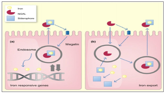 Figure 2: Schematic model of the functions of neutrophil gelatinase associated lipocalin. NGAL: Neutrophil Gelatinase Associated Lipocalin [2].