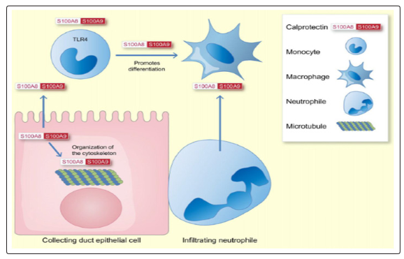 It has been shown that renal collecting duct epithelial cells produce S100A8 and S100A9 in a model of kidney injury in response to unilateral ureteral obstruction (UUO) [40].