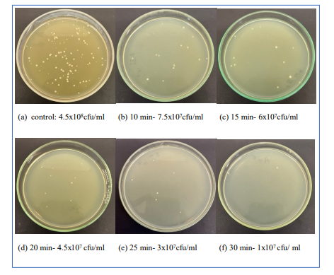 These findings establish a consistent downward trend in OD with increasing exposure, with the most pronounced effect observed at30 min (Figure 3).