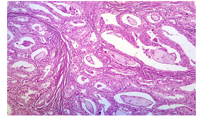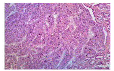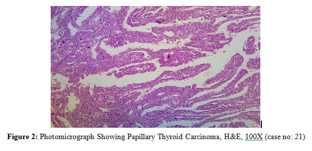 Figure 8: Photomicrograph Showing Papillary Thyroid Carcinoma, H&E, 100X (case no: 20)
