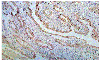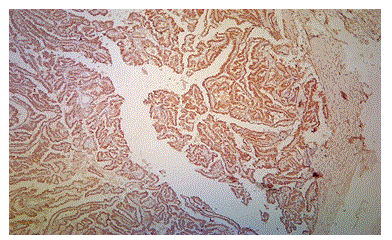Figure 3: Photomicrograph Showing Papillary Thyroid Carcinoma with Strong and Diffuse Cytoplasm Positivity for BRAF V600E (case no: 21)