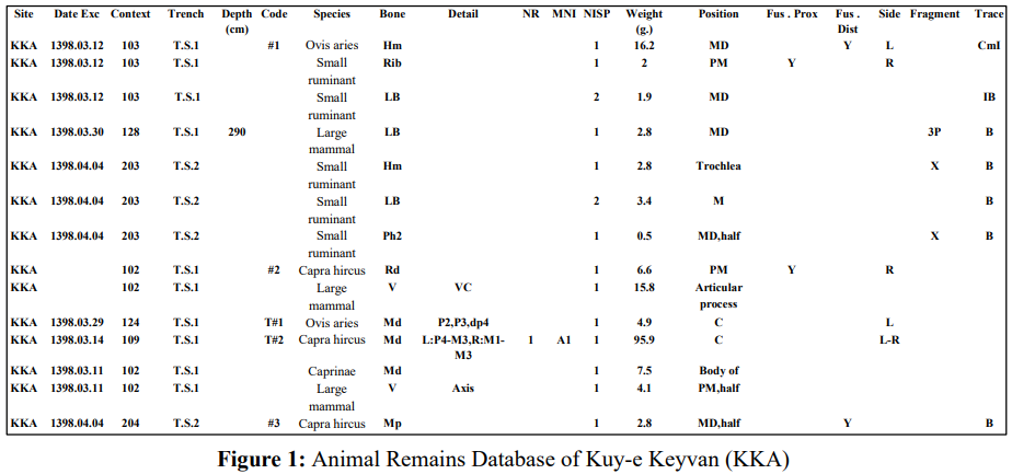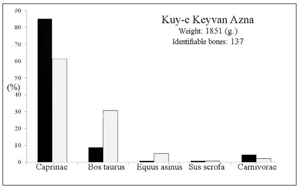 As a result of zooarchaeological research, the range of identified species in the site of Kuy-e Keyvan belongs only to mammals (Table 3)
