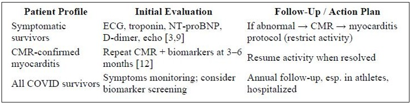 Table 2: Diagnostic & Management Algorithm for Post-COVID Cardiovascular Sequelae