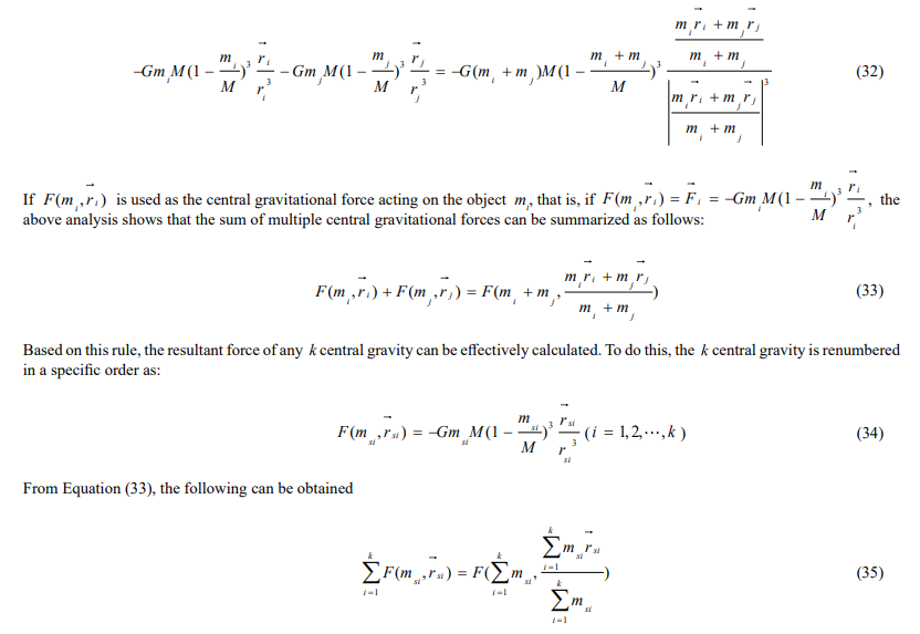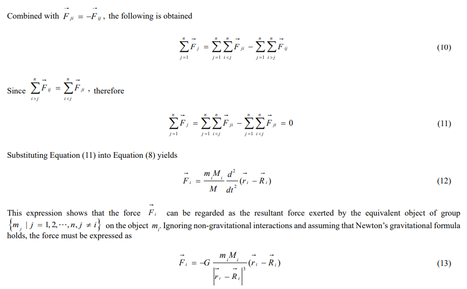 Both Equation (2) and Equation (12) describe the gravitational force of a celestial body mi, and although these equations differ in mathematical form, this does not mean that there is a theoretical error. In fact, the two equations are physically consistent and can be verified using the same reference frame