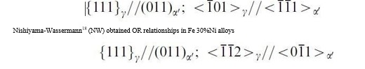 Phase transformation occurs through the operation of an orientation relationship (OR). According to Bhadeshia an OR refers to the coherent geometric parallelism between specific planes and directions of parent–child crystal symmetries on either side of their common boundary segment. In all parent– child crystal symmetry combinations, one or more favored ORs exist that provide the best fit at their boundary segment interfaces and enable crystallographic phase transformation between them [13].