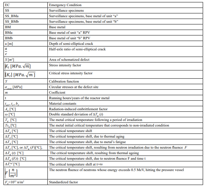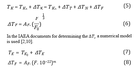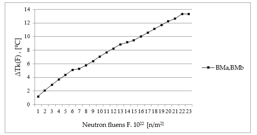 In the last 15 years, it has been assumed that the brittleness of the metal, irradiated for many years with neutron streams with an energy greater than 0,5 MeV is due to neutron and thermal aging. The embrittlement contributions of both components should not be considered separately. The embrittlement process depends on the chemical composition of the alloys, but also on the values of neutron fluence, operating temperature and running hours, which can be expressed as shown below [4]. The value added to the temperature ΔTK (F,t) shift has two components: one of the components is due to the neutron fluence ΔTK (F), and the other one is due to the thermal embrittlement ΔTK (t).