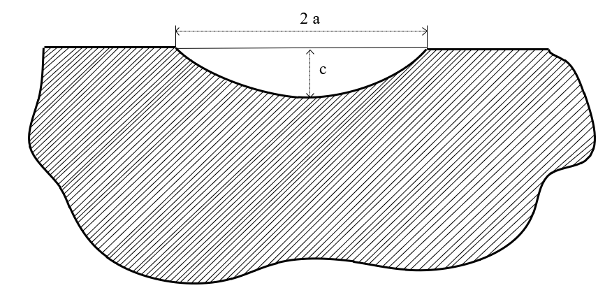 Figure 3: Surface Defect Diagram (Semi-Ellipse with a Semi-Major axis ‘a’ and a Semi-Minor Axis ‘c’)