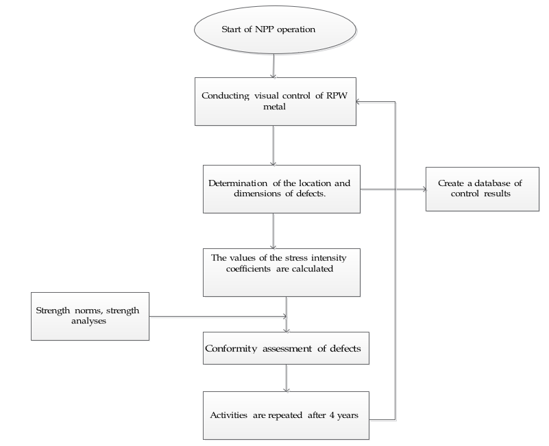 The cause of the defects is mechanical wear, and their growth is under the influence of environmental factors - high pressures and temperatures of fluids, radiation, corrosion and erosion. Violation of the integrity of the RPV surface is an extremely undesirable phenomenon. Safety is a top priority for any nuclear power plant it is an unconditional requirement. In order for the operation of the nuclear unit to continue, it is required to prepare analyses of the admissibility of defects. The practical study is through a visual inspection method that is regularly applied to the inner surface of the reactor vessel every 4 years. After 15-20 years of operation of the unit, defects in the metal appear and develop, which can be observed, determine their location and measure the parameters of defects. Theoretical research is to calculate the mechanical characteristics of the metal.
