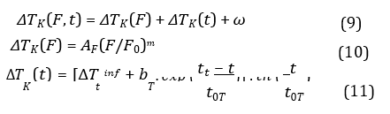 Function ΔTK (F) for the base metal of the RPV metals, calculated according to (6) are presented in Figure 9.