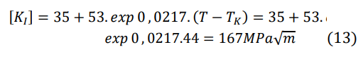 The values [KI] of the stress intensity coefficients are calculated (3), using the highest value of the shift of the critical temperature of the RPV metal.