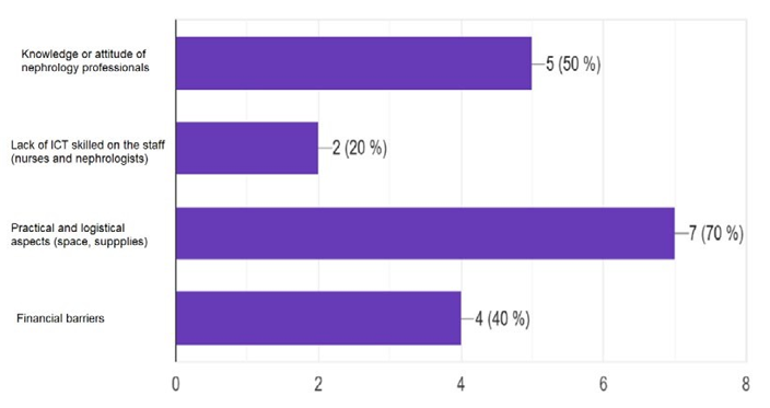The ICT can bring a better integrated approach to improve CKD patient management. A good integrated approach in dialysis will impact enormously inpatient life, healthcare services, and global climate change considering the environmental cost resulting from dialysis treatment. According to the results, the nurses look to be more interested in ICT intervention in Nephrology, which can explain why globally nurse corresponds to 80% of respondents. In our point of view this is very important because, in nephrology care, the nurse is who spends more time with the patient. They treat and care for patients throughout their lifespan from infancy or, in this case, from the beginning of renal problems to the end of life. The role of nephrologists, in addition to consultations, is to prescribe treatments. The execution, which is the phase where there is usually the greatest intervention of the ICTs, is in charge of the nurses.