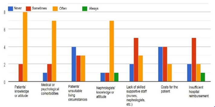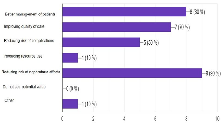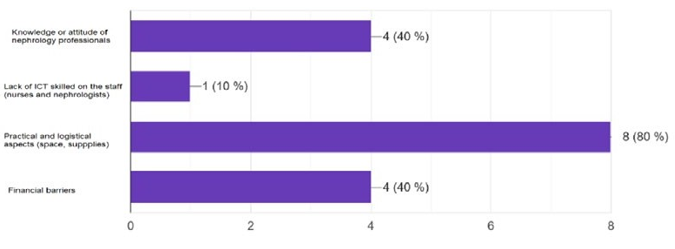 The survey confirms that HCP is satisfied with ICT intervention in nephrology because it brings several benefits listed below: Improves patients' quality of life, allows real-time data visualization or online communication, alleviates the geographic burden and associated cost for travel, Improves outcomes, permits the adjustment of prescription more easily and frequently, enhances patient self-management of the disease at home, diagnosis of infections by pictures or video consultation, improving Adherence, improve outcomes and treatment satisfaction, can improve the management of supplies, improve patient education, improve patient and disease management, bring time-saving benefits, permit transmission of patients data from several sources on-time, check patients data, from everywhere, in a glance, more proactive nurse care, optimize resources, very good acceptance of the nephology staff. Can also, increase the coverage area of nephrologists, and increase patient safety.