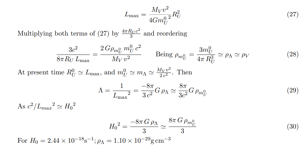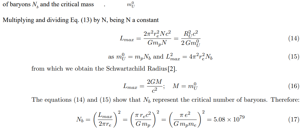 Being Nb = 5 × 1079; m0U = 8.35 × 1055 g and MV : mass of the vacuum 2.64 × 1063g (Sect. 3.3),