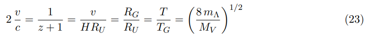 These proportions express the dynamic state of the Universe unquestionably. The term MV v2/2 c2, the same as the other terms, represents the relativistic mΛ mass-energy equivalence of the space in expansion.