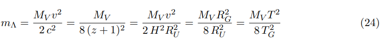 Mv = 2.64 × 1063g is the initial mass of the cosmological space (Sect. 3.3). Raising to square all this dimensionless terms and reordering, we find