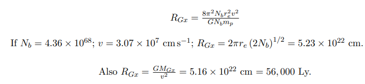 The discordance between the initial baryonic radius RG = 2.0 × 1023cm for T = 167, 000ºK and RG = 6.37 × 1024cm = 2.064 Mps for TG = 5, 250ºK takes place, because in the plasma there is a great excess of photons with respect to the number of baryons (∼ 108 : 1) and this determine that the baryonic age was produced considerably later. Finally, it must be added that the process of galaxies formation is not fully efficient (just 0.003 to 1) and most of the cosmic material is gas and dark matter.