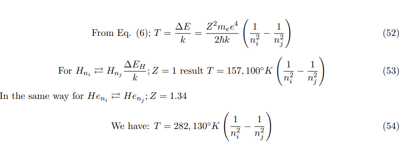 For the last point, the balance begins from the gravitational collapse, and continues after the recombination in higher Rydberg microstates until the present time. Then, it can be said that the Rydberg H - He atoms behave as micro-barometers in thermodynamic equilibrium with the CMB radiation.
