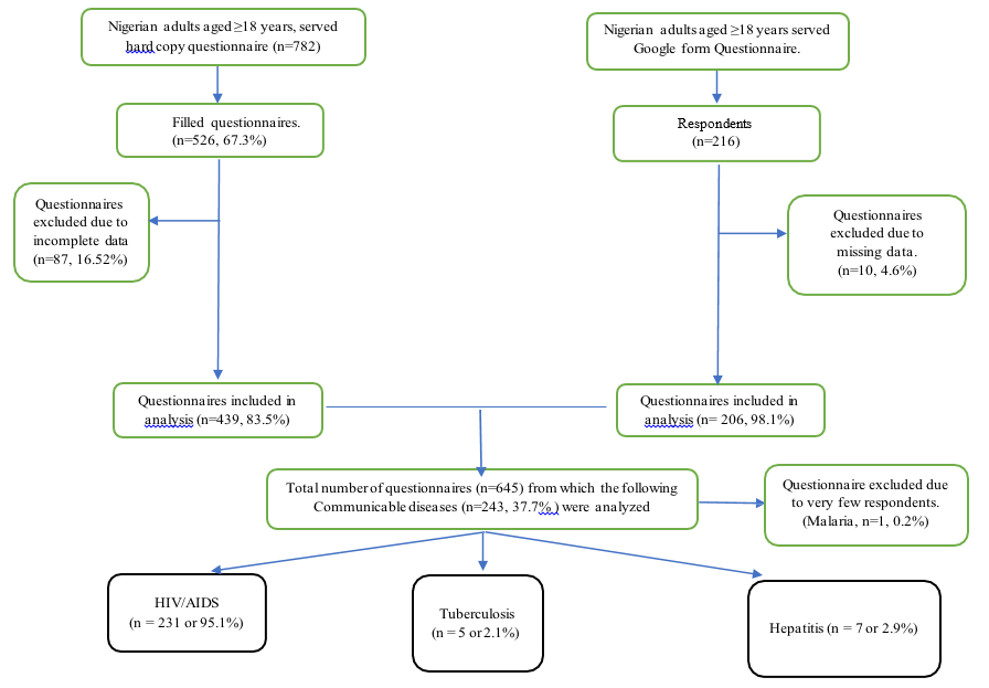 Participants: Adolescents, and adults residing in Nigeria. Respondents with TB, HIV and Hepatitis (n = 243) from a larger study (n=645) were recruited from different geo-political zones and various ethnic groups.
