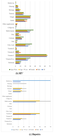 Figure 3: Types of Supplements Mentioned as Taken By Respondents Diagnosed with (A) Tuberculosis (B) HIV and (C) Hepatitis.