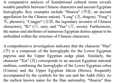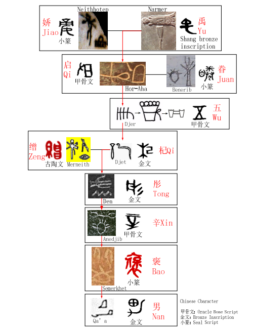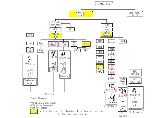 Origin of Chinese Characters, Xia Dynasty, Ancient Egypt, Egyptian Hieroglyphs, King List Correlation, Sino-Egyptian Historiography, Cultural Migration, Genealogical Analysis
