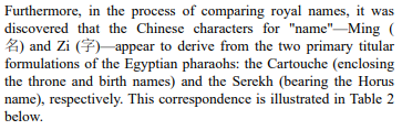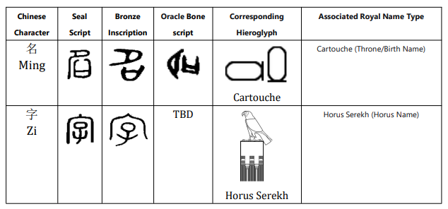 Table 2: Comparison Between the Chinese Characters for "Name" (Ming and Zi) and Egyptian Hieroglyphs