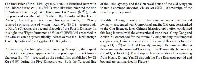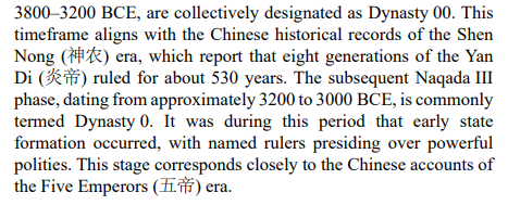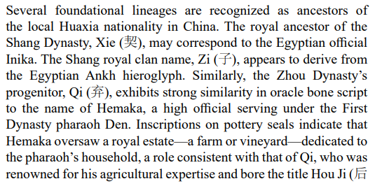Through comparative analysis of cultural symbols, royal titulary, king lists, and genealogical records, multi-layered parallels have been identified across the Naqada/Dynasty 0, Early Dynastic, and Old Kingdom periods. The cumulative weight of this evidence demonstrates that the early narrative of China's recorded history— from the Five Emperors to the initial Xia Dynasty—aligns precisely with the Egyptian record from Dynasty 0 through the Old Kingdom, suggesting that the foundational chapters of Chinese civilization constitute a preserved and adapted account of early Egyptian civilization.