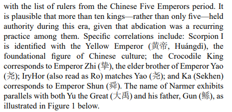Figure 1: Comparison of the King List from the Chinese Five Emperors Era with the Rulers of Egyptian Dynasty 0