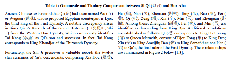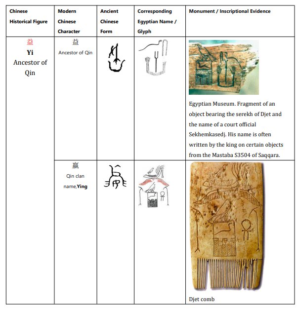 Table 5: Comparison of Proposed Egyptian Prototypes for the Ancestral Figures of the Qin, Zhou, and Shang Dynasties