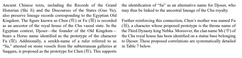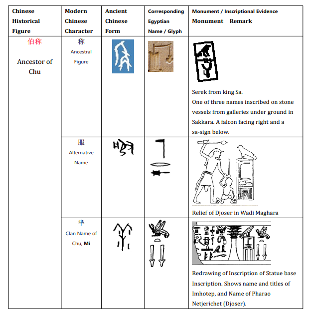Table 7: Proposed Egyptian Prototypes of Key Figures and Terms Associated with the Ancestral Lineage of Chu