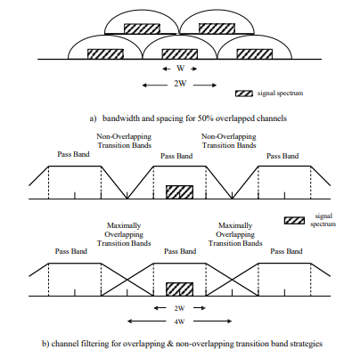 and for every signal of interest there will be at least one channel within which the signal is completely contained. This is clearly evident from examination of Fig. 2a, since as soon as the signal spectrum is shifted past the boundary of one channel, so it moves completely into its overlapping neighbour – the prototype channel filtering requirement is as defined in Fig. 2b.