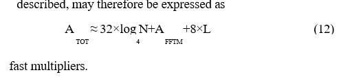 fast multipliers, where ‘AFFTM’ is the number of fast multipliers required for the maximally parallel implementation of the short M point FFT. For the case where ‘M’ has a value of seven, for example, the corresponding 7- point complex-data FFT may be carried out at the cost of just 16 real multiplications so that ‘AFFT-HR’ would also equate to 16 fast multipliers.