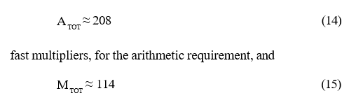 The arithmetic requirement is first assessed, at least in terms of fast multipliers, for the main system components. In order to meet the timing constraints discussed in the previous section, the polyphase filtering carried out by the PDFT module needs