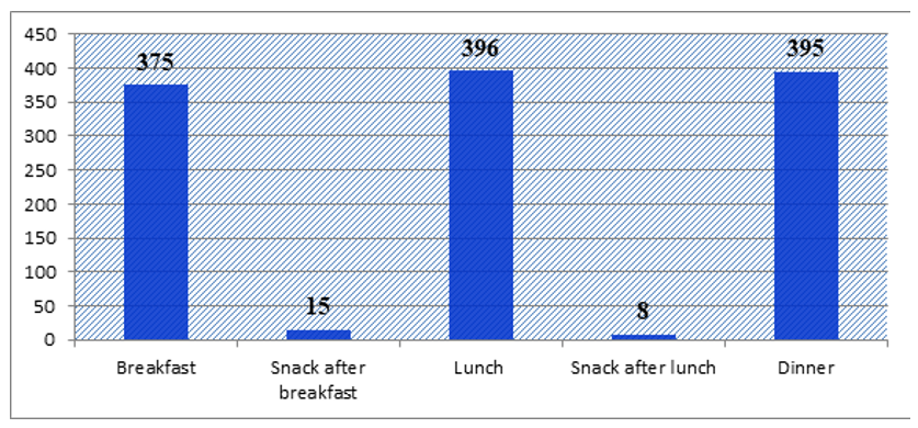 Pass four:-The interviewer reviewed the recall to ensure that all the items have been recorded correctly. Every respondent were probed for snacks, drinks and outdoor consumption of any kind of food after they complete recall. The interviews were conducted on all seven days of the week to capture changes in intakes across various days of the week. The dietary recall was repeated in randomly selected of the house- holds by interviewer and in a different nonconsecutive day than the first. The recall was repeated to adjust for the day to day variation we were include week day and weekends and to adjust within person variation of nutrient intakes of the study partici- pants we were increased days. All recall days were arranged on non-special occasion days like holidays or feasts.