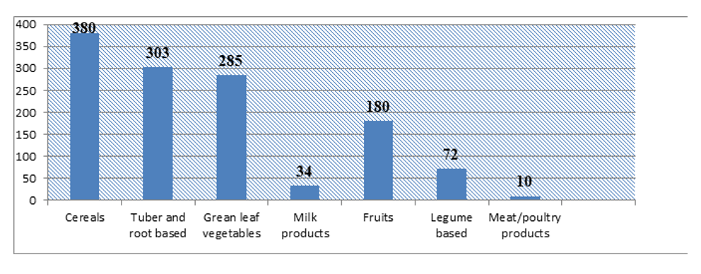 In order to accurately estimate the portion size of foods and drinks consumed, Calibrated locally available labeled cup, bowl, spoon, serving spoons, food weighing scale. Moreover, the data collectors carried different sizes of locally consumed fruits and vegetables such as bananas, avocado, shallot, tomato, potato, yum to facilitate the recall [21].