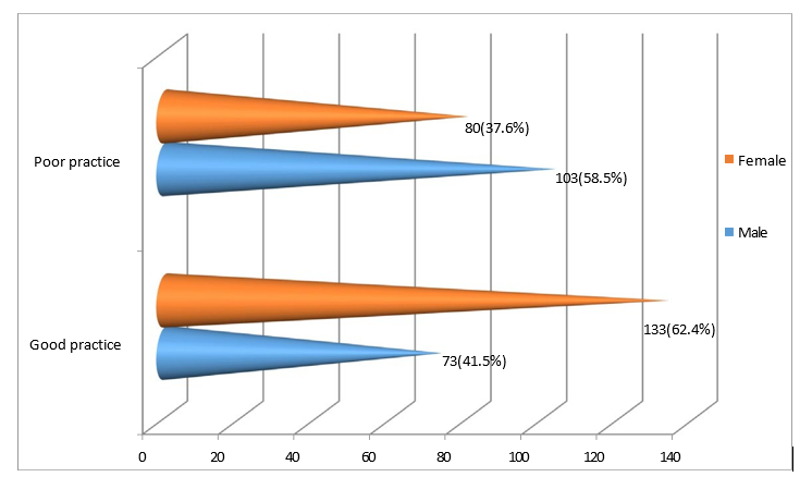 • Good Dietary Practice: Study participants who scored above median value for response yes were classified as having good dietary practice from the listed 15 dietary practice measuring questions.