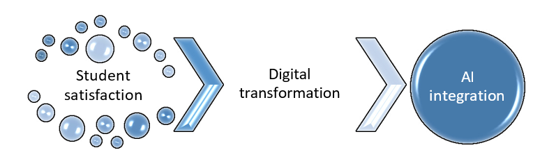 • To what extent do digital transformation initiatives and the integration of AI correlate with student satisfaction?